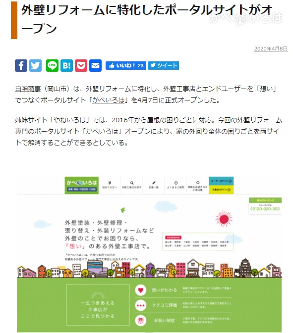 「かべいろは」は当社規定の掲載基準をクリアした、顔が見れる地元の外壁工事店のみ掲載。お客様自身が直接、地元の外壁工事店に依頼が可能です。外壁工事依頼をお考えの方は、ぜひご活用ください。